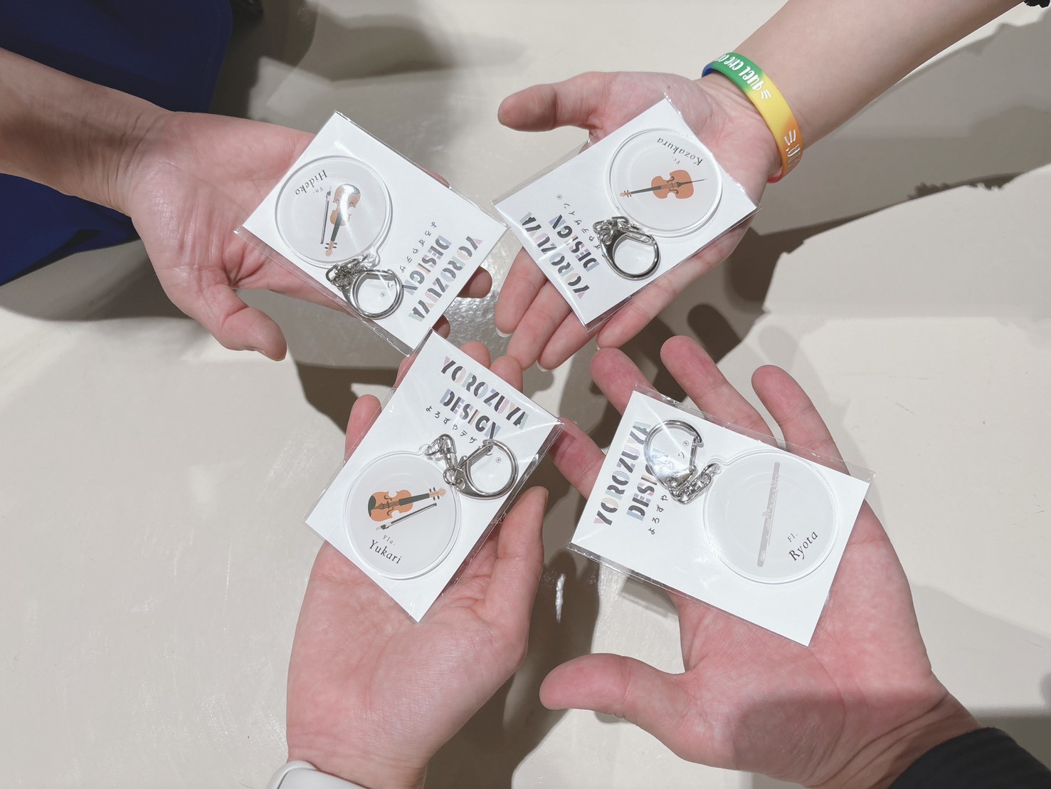 ステキな手作りのキーホルダーをいただきました。それぞれの楽器がモティーフになっていてメンバー大喜び。