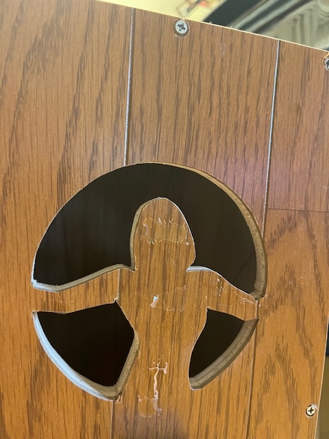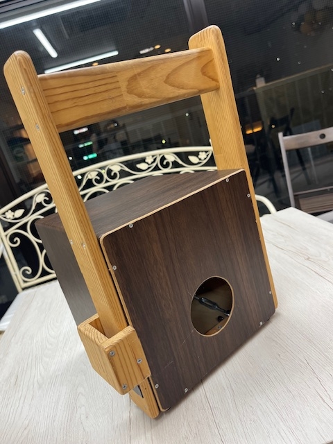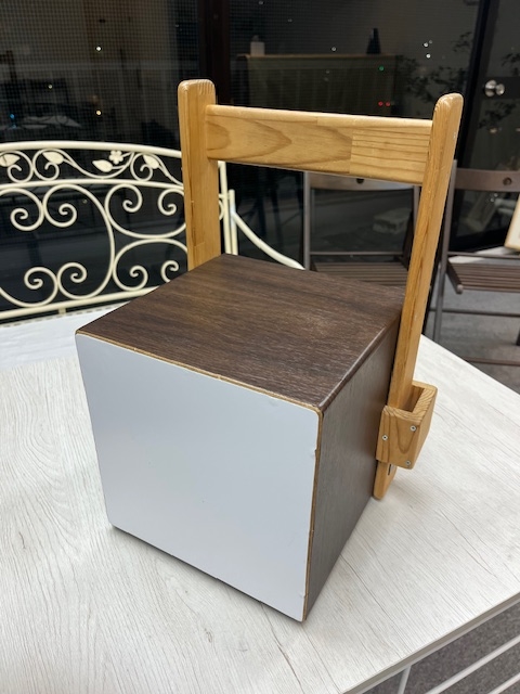 以前作ったカホーンはお子さま用で、背もたれがついていました。↓