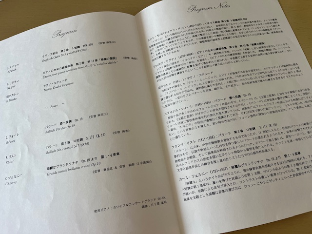 2013年東京青山にて双子の妹、麻里江さんとジョイントリサイタルをした時のプログラム ↓↓↓