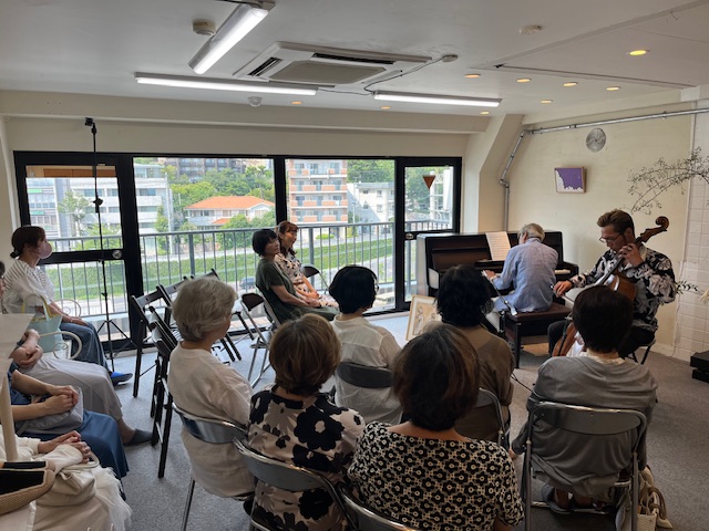 「昼下がりのジャズ」 投稿日 2025年8月27日 著者 admin カテゴリー 3~5歳 カテゴリー アンサンブル カテゴリー グループレッスン カテゴリー コントラバス カテゴリー コース カテゴリー ビオラ カテゴリー ピアノ カテゴリー ブログ カテゴリー ヴァイオリン カテゴリー 中学生~大学生 カテゴリー 中学生~大学生 Expert カテゴリー 大人 カテゴリー 小学生 カテゴリー 小学生 Expert カテゴリー 教室ブログ カテゴリー 管楽器 第11回みかげサロンコンサート。 今回はジャズ界の大御所ピアニスト石川武司さんをお迎えしてチェロとのデュオコンサート。 魔法の様に鍵盤の上を自在に走り回る10本の指。 魂を捧げてピアノに溶け込むチェロの弦。 ジャズナンバーだけでなくクラシックからカッチーニのアヴェマリアや、ピアソラのアヴェマリアなども演奏され圧巻な音のシャワーはあたかも滝に打たれたような清々しい気持ちにさせてくれました。 アットホームな雰囲気の中、お客様からの掛け声などで会話も愉しみつつ午後のジャズに酔いしれた贅沢な時間。