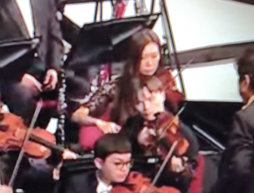オーケストラで🎻出演の縁先生。生徒さんには当日まで内緒にしておくことに・・・😉