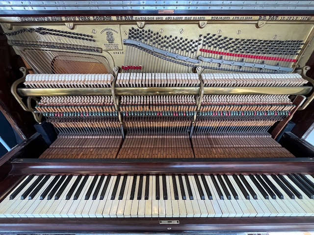 「調律②・Steinway=アップウエイト編」 投稿日 2025年12月14日 著者 admin カテゴリー 3~5歳 カテゴリー アンサンブル カテゴリー グループレッスン カテゴリー コントラバス カテゴリー コース カテゴリー ビオラ カテゴリー ピアノ カテゴリー ブログ カテゴリー ヴァイオリン カテゴリー 中学生~大学生 カテゴリー 中学生~大学生 Expert カテゴリー 大人 カテゴリー 小学生 カテゴリー 小学生 Expert カテゴリー 教室ブログ カテゴリー 管楽器 大きな大きなアップライト型(アップウエイト)の年代物。 スタインウエイ専属リペアの腕を持つ調律師さんによる細かい調整が続きます。 小春日和の暖かい教室。キリンも背伸びしているように・・・・🦒 前板を外すことはあっても、全体が見渡せることが出来ないので、今日はじっくり根元の部分も観察!