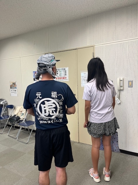今日もMちゃんのお父様がユニークな服装で登場❣思わず後ろ姿を撮らせていただきました。