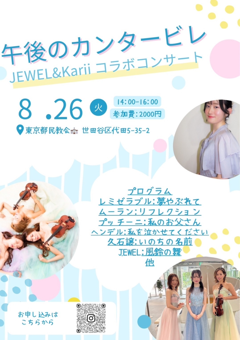 カノンムジークで活動するアーティストのコンサート案内です 日時 2025年8月26日(火) start 14:00~ 会場 東京都民 […] -